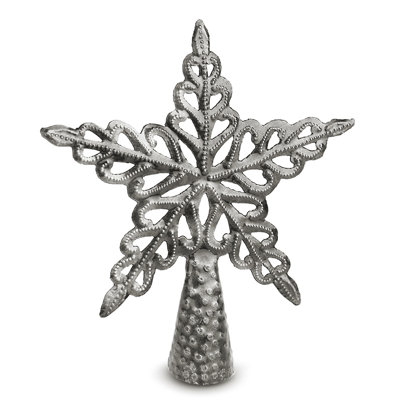 The radiating petal design on this lovely tree topper is just right. Created by Claude Pierre.
