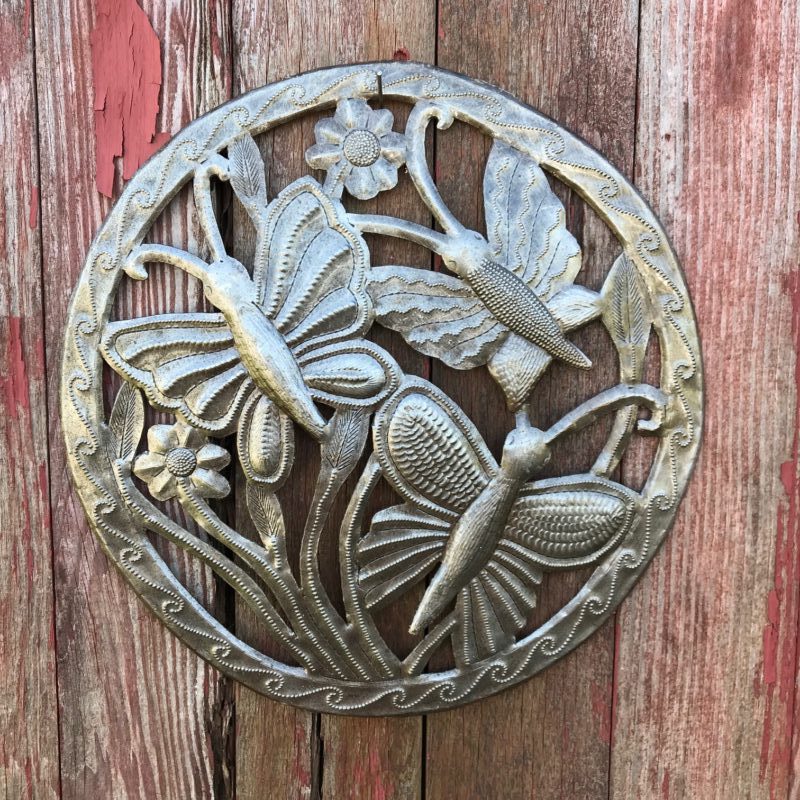 These three buttlerflies seem to literally fly off the wall and into your heart. Crafted by Stanley Brutus.
