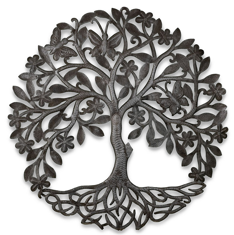 Our new large tree sculpture is very showy with butterflies and blossoms … you’ll love the way the branches harmoniously touch the roots. Crafted by Jean Charles.