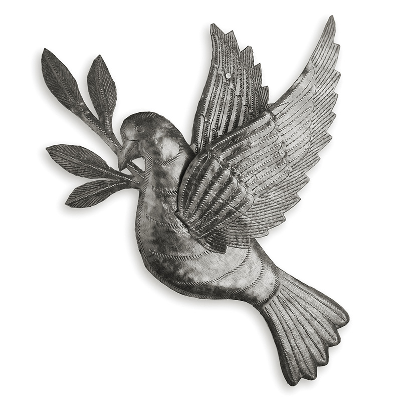 The cloudy lilt of this heralding dove is wonderful in every detail, including a three dimensional wing that bends out. Created by Jonas Soulouque.