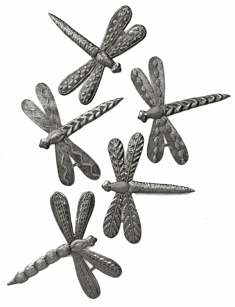 Check out the beautiful design work on the wings of these dragonflies. Sold as an assorted set of three. Created by Wilson Etienne.