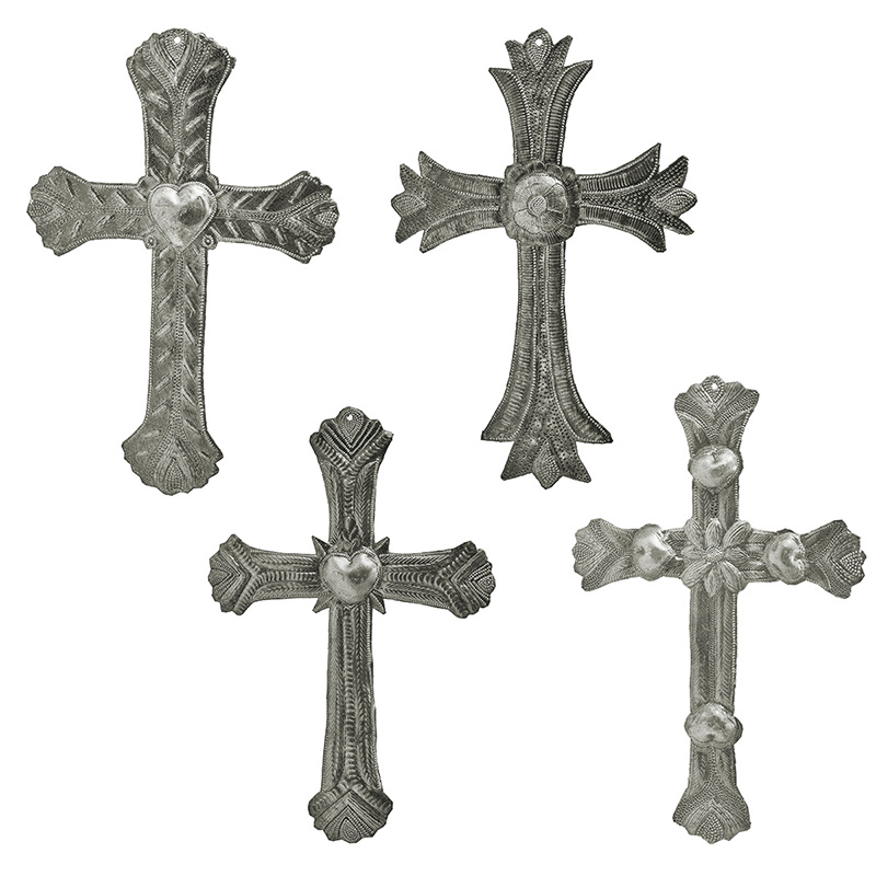 These large crosses come is various designs centered on hearts and flowers … truly beautiful. Sold as an assorted set of four. Created by Jean Claude Soulouque.