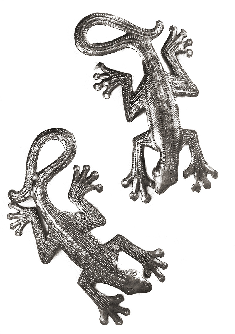 These twim geckos and the mirrored image of each other. Sold as a set of two. Created by Brutus Max-Elie.