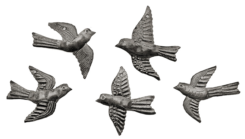 Our most demure size of birds are the easiest to sell … they almost fly out the door! Sold as a set of five distinct designs. Create by Cineus Louime.