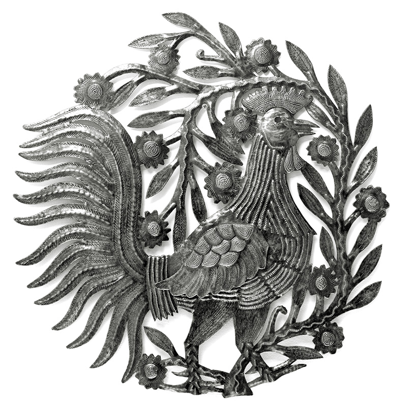 This large rooster is happy to herald each and every day. Fetures three dimensional wing. Created by Norbert Milfort.