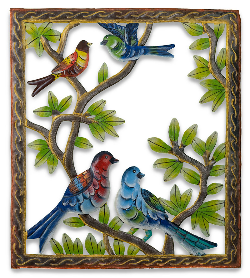 A couple of sweetly painted song birds have found home is this wonderful panel design. Created by Roosevelt Beauchard.