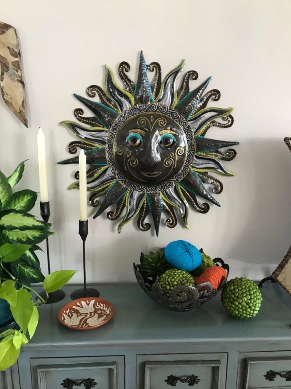 This unique painted sun face creation loves to show its true colors … distinctly different. Made and painted by Roosevelt Beauchard.