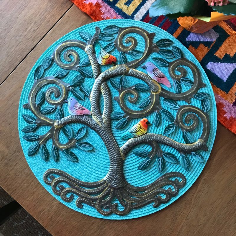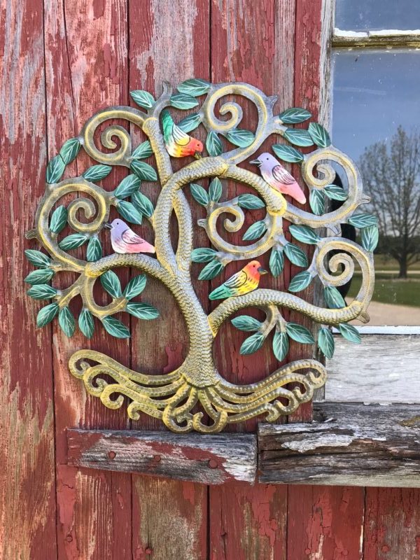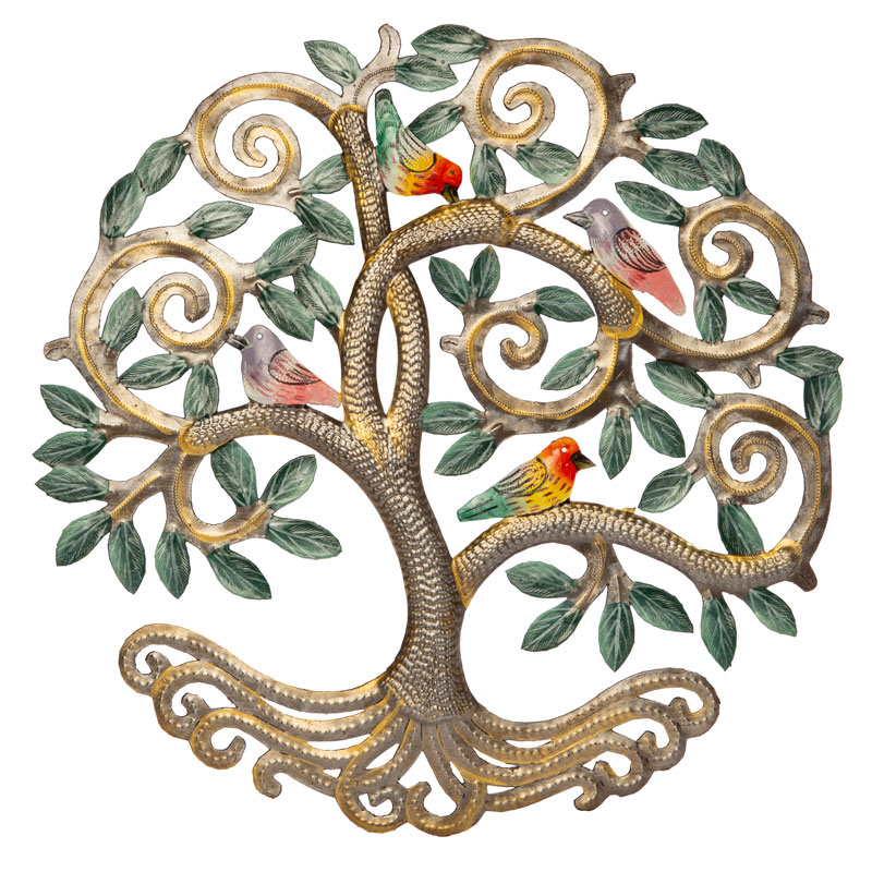 Softly colored hand-painted details adorn this wonderful medium-sized metal art creation. Made by Stanley Brutus.
