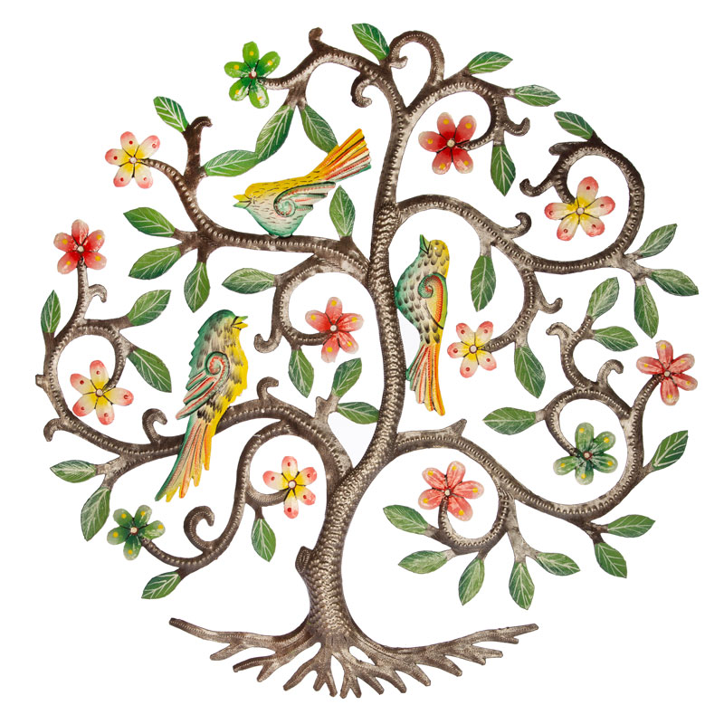 This painted bird trio rule the floral roost. Crafted and painted by Seignon Gonzales.
