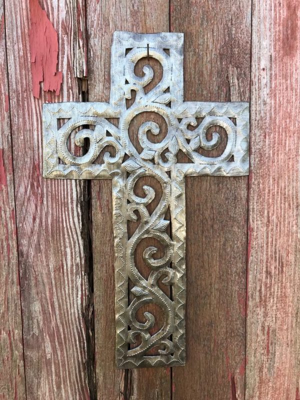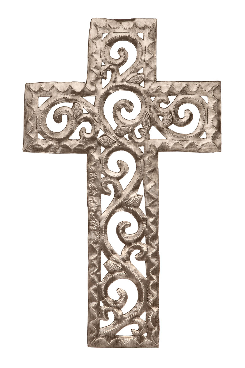 Scrollwork design details are featured in this appealing cross. Made by Luckson Thenor.
