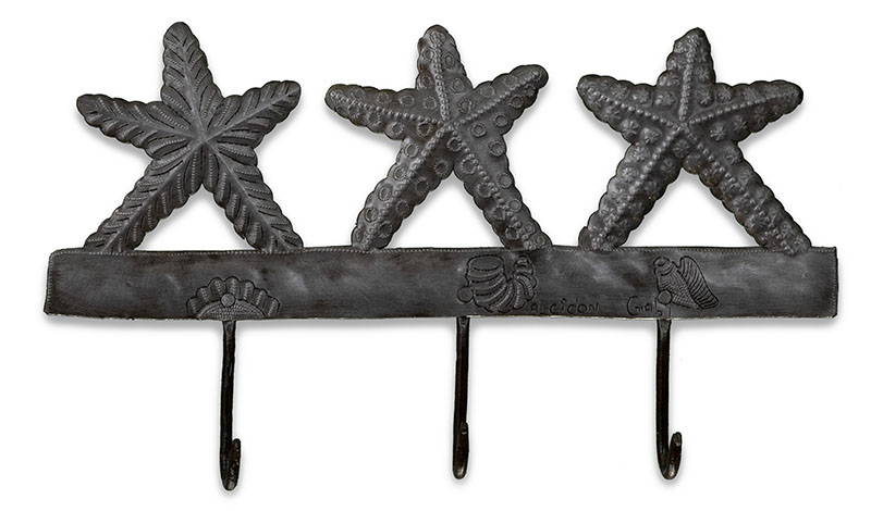 The three happy star fish are lined up and ready for duty. This is a must have for nautical and beach themed décor. Designed and made by Gaby Alicdon.