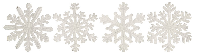 A set of four snowflakes painted on both sides in four distinct designs … beautiful! Made by Woodnet St. Preux.