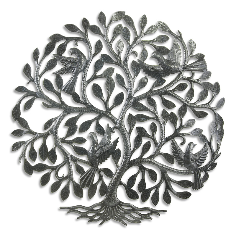 A beautiful and graceful new tree of life of round with four birds … check out the interesting detailing in the roots. Created by Louis Wilfrid.
